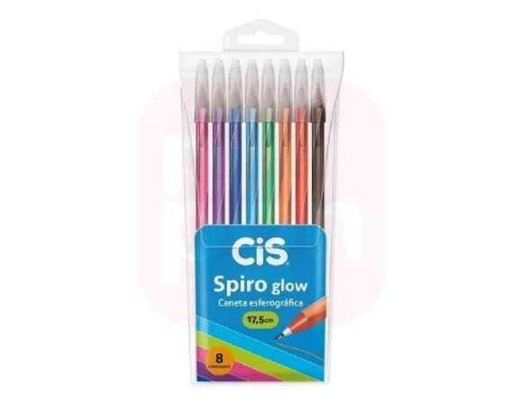 Caneta Esferográfica Spiro Glow 0.7mm KIT com 08 Cores - Cis